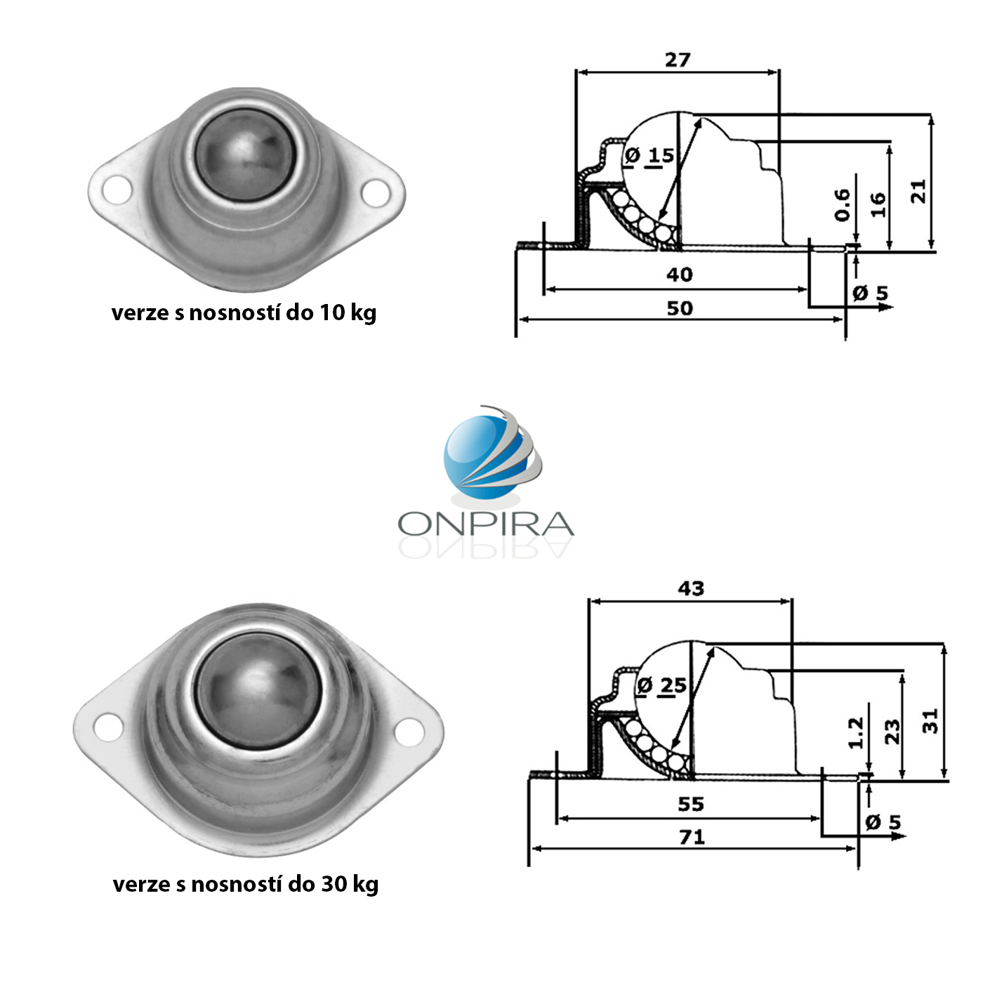 UPOZORNENIE: Toto nie sú prepravné kolieska, ale guľôčkové jednotky určené na montáž do podlahy alebo stola = guľôčkou nahor. Pri nesprávnom smere použitia môže jednotka poškodiť nielen seba, ale aj povrch prepravovaných materiálov.
