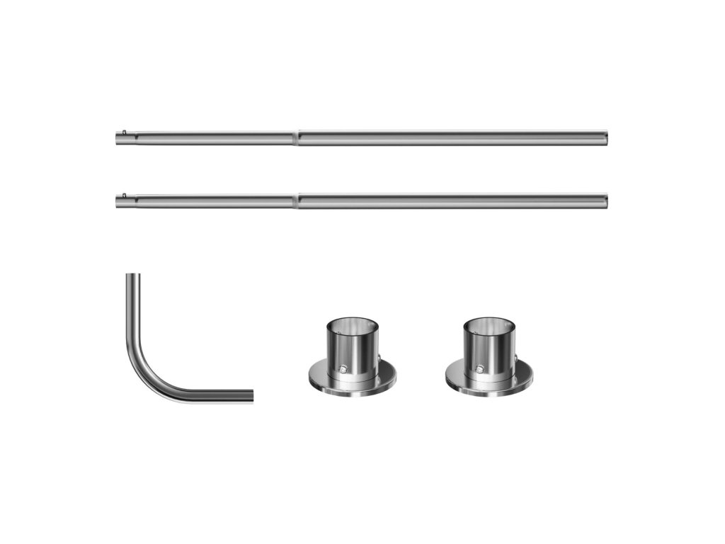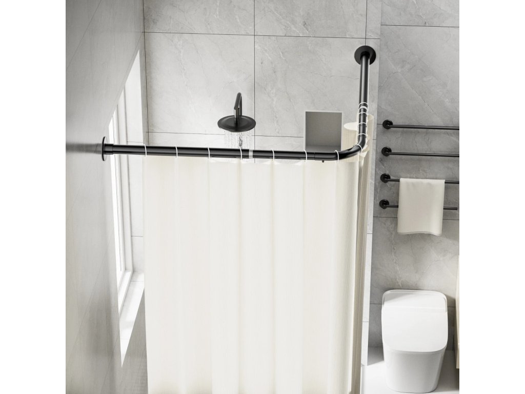 Rohová teleskopická tyč pre sprchový záves o rozmere 112-180 cm (67-90 cm) v nerezovom prevedení s bielou alebo čiernou práškovou úpravou.