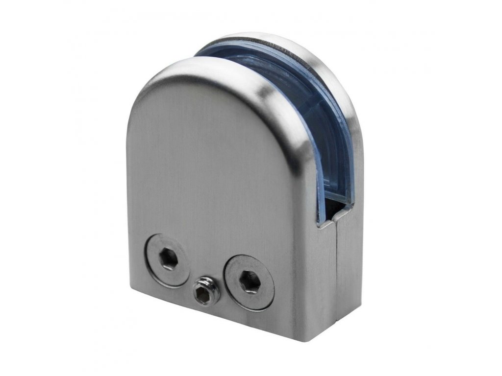 Nerezový držiak skla s rozmermi 45 x 55 x 25 mm, vhodný pre širšie sklenené tabule 8,5 až 9 mm a 10 až 12 mm.